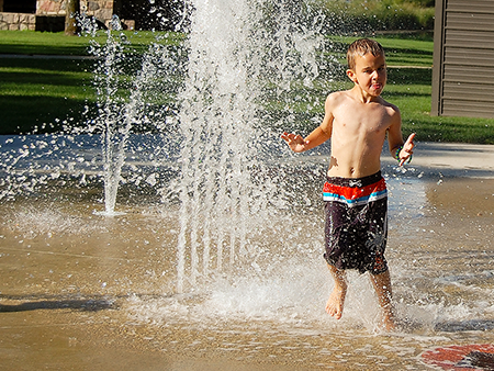 Photo of splash pad at Pomme de Terre park in Morris, MN, by Susan Belanger. All rights reserved.